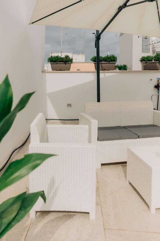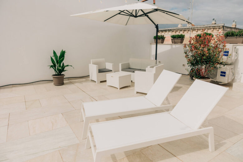 La terrazza della Nicolaus Suite è il luogo perfetto per godersi un aperitivo o un drink serale, ammirando il panorama circostante e il tramonto sul mare. Con un servizio bar disponibile per gli ospiti la terrazza offre un’atmosfera elegante e rilassante, ideale per trascorrere momenti piacevoli in compagnia.